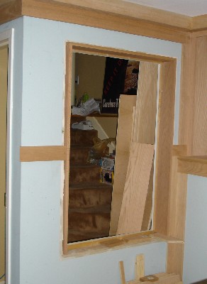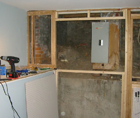 Put a hole in the wall! In order to let in light and to see people coming down the stairs, I took out a section of wall and built a window. Actually, it’s just a frame now, but it will become a window eventually.