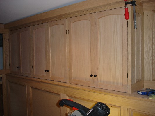 The cabinet doors arrive and I set the soffit in place.