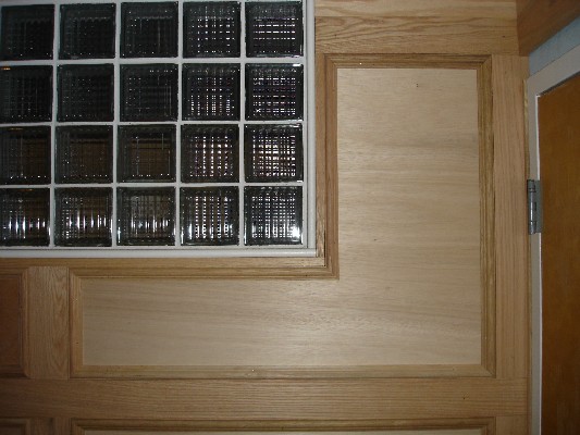 Extending the wood frame past the window will look good, I hope. I’ll try to make it look like the window just interrupts the consistent panel pattern, rather than trying to make panels to fit around the window.