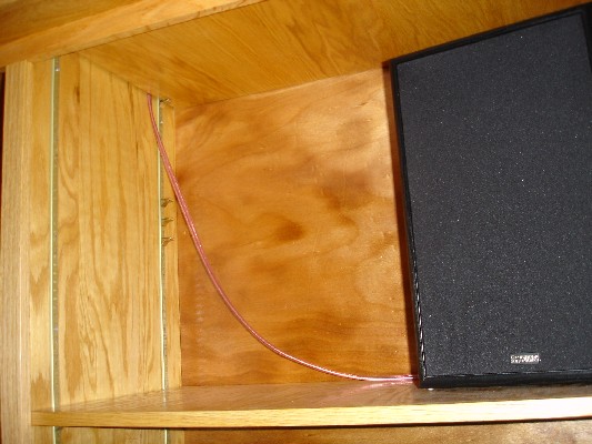 The speaker wire droops a bit, which is not ideal, but there will probably be stuff in front of it, eventually.